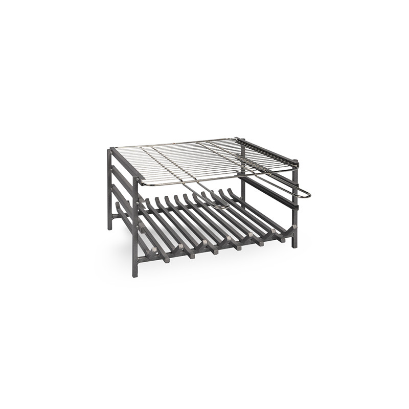 Vložka do krbu Paleo a Rustika z masivní oceli a povrchovou úpravou žáruodolnou barvou, včetně grilovacího nerezového roštu 450x460 mm.