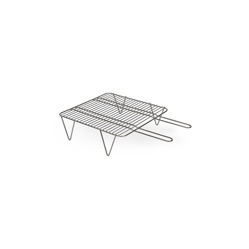 Nerezový grilovací rošt o rozměru 450x460 na nožkách.