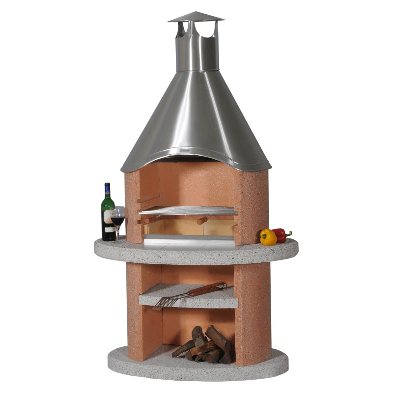 Dvoubarevné provedení osvědčeného modelu Arcus z řady Variant. Barevná kombinace bílošedého jemného vymývaného povrchu se stejným povrchem barvy terakota a se střechou z nerezu vytváří klasický zahradní krb, harmonicky sladěný s novou, moderní tváří. Základová deska již ve standardním provedení.