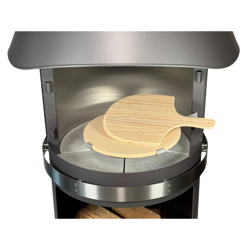 Pizzu jako v Itálii připravíte na tomto pizza kameni, který je vhodný pro všechny modely zahradních krbů Firestar od DN 550 . Vždy dostanete kámen na pizzu s odpovídajícím rámem z nerezové oceli a lopatkou na pizzu. Plocha o Ø 33 cm cm nabízí dostatek prostoru a je vhodná i na chléb nebo rohlíky. Celý rám je umístěn přímo do topeniště a během pár minut vykouzlí dokonalé výsledky přímo ve vašem grilovacím krbu Firestar.